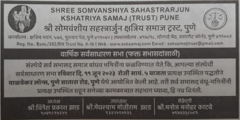 सर्वसाधारण सभेची नोटीस
